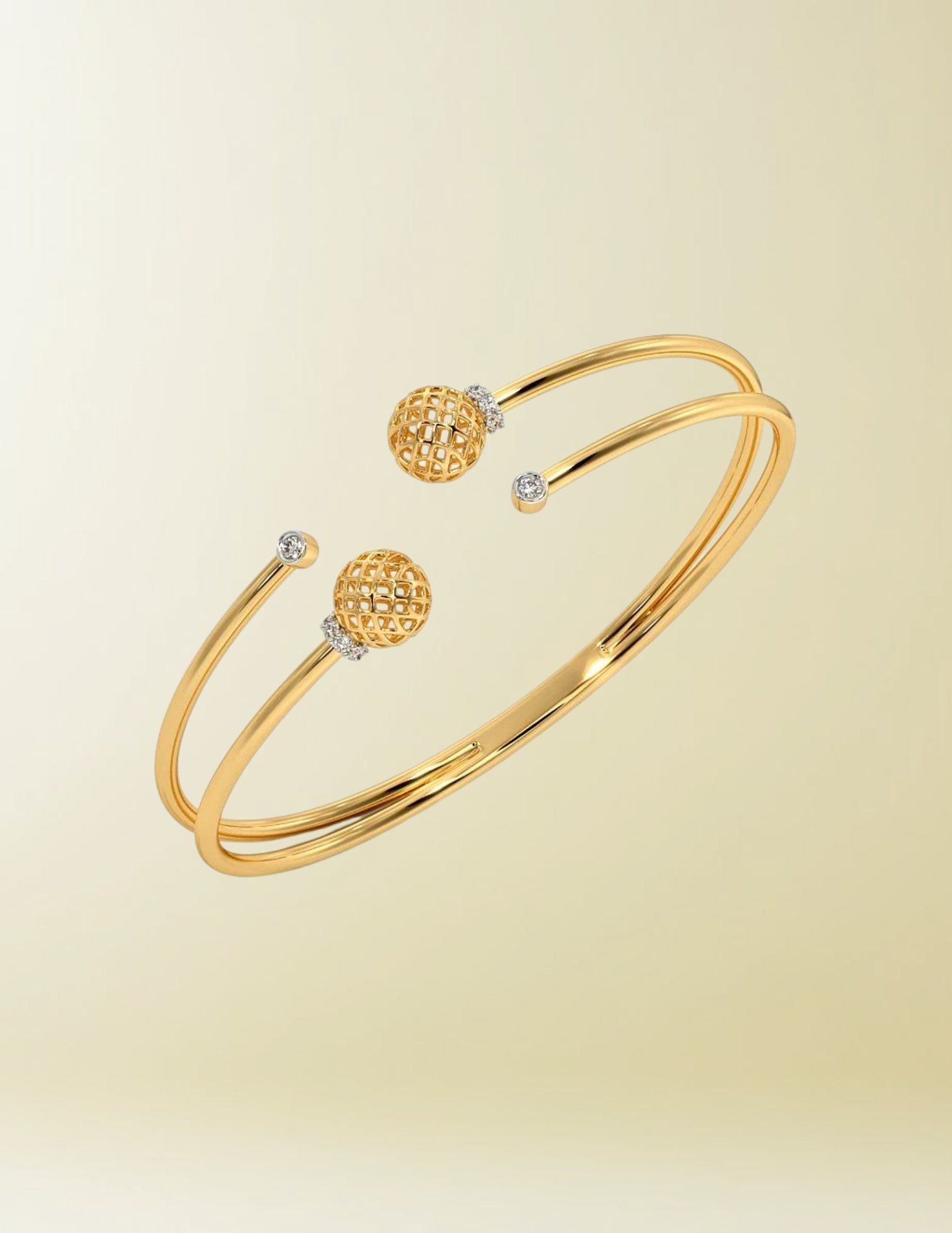 This bangle stands out with its intricate twisting design that reflects light beautifully. Available in various finishes, it can be customized to match your personal style, whether you prefer gold, silver, or rose gold.